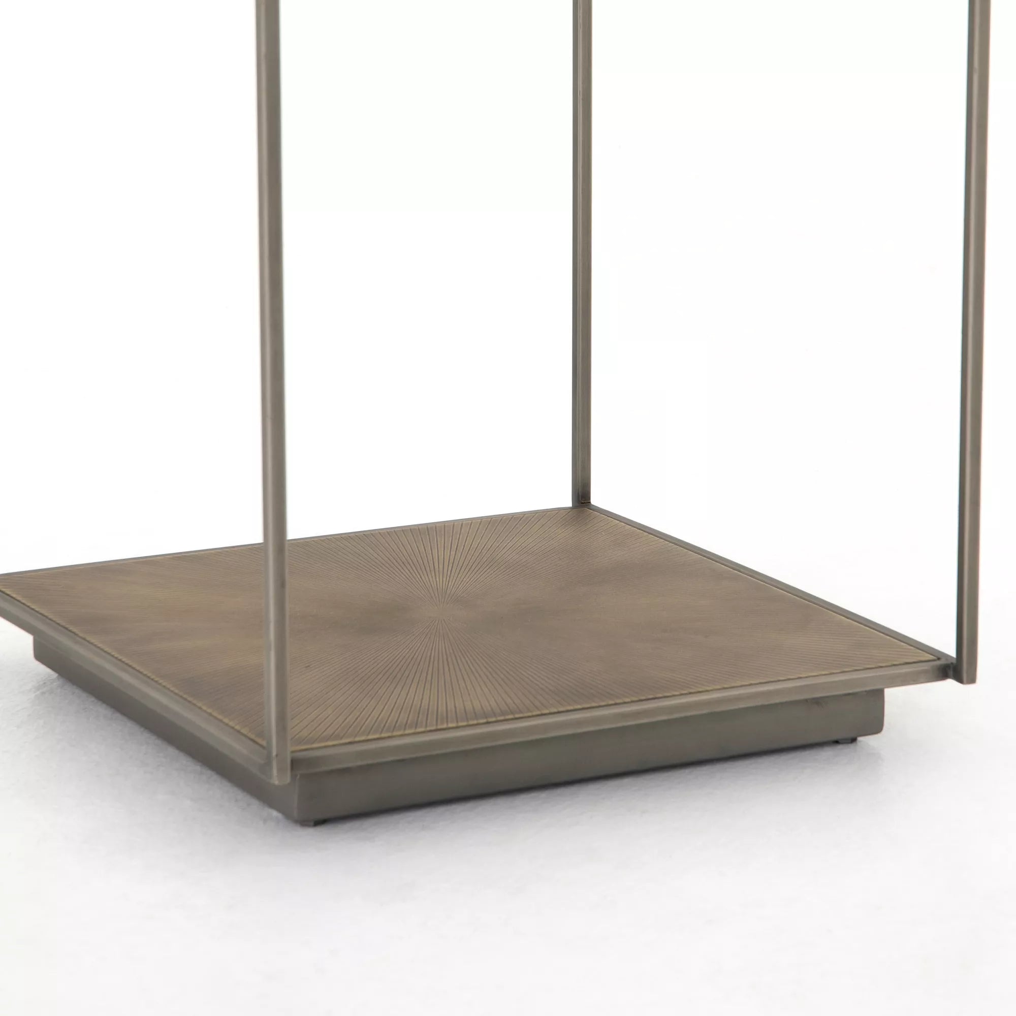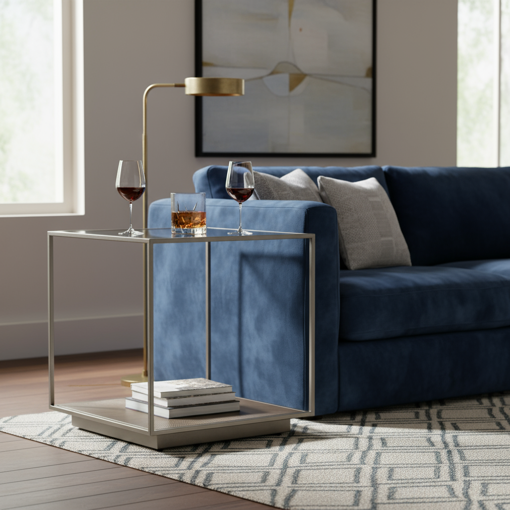 The Abel End Table — A stunning mix of modern elegance and artistic detail. Featuring a clear tempered glass top and a metal frame with clean, geometric lines, the Abel brings lightness and sophistication to any room. Its textured gold-tone base shelf adds a touch of luxury and visual warmth, making it both functional and decorative. Perfect beside a sofa or as a statement accent, the Abel End Table embodies refined contemporary style with a hint of glamour.
