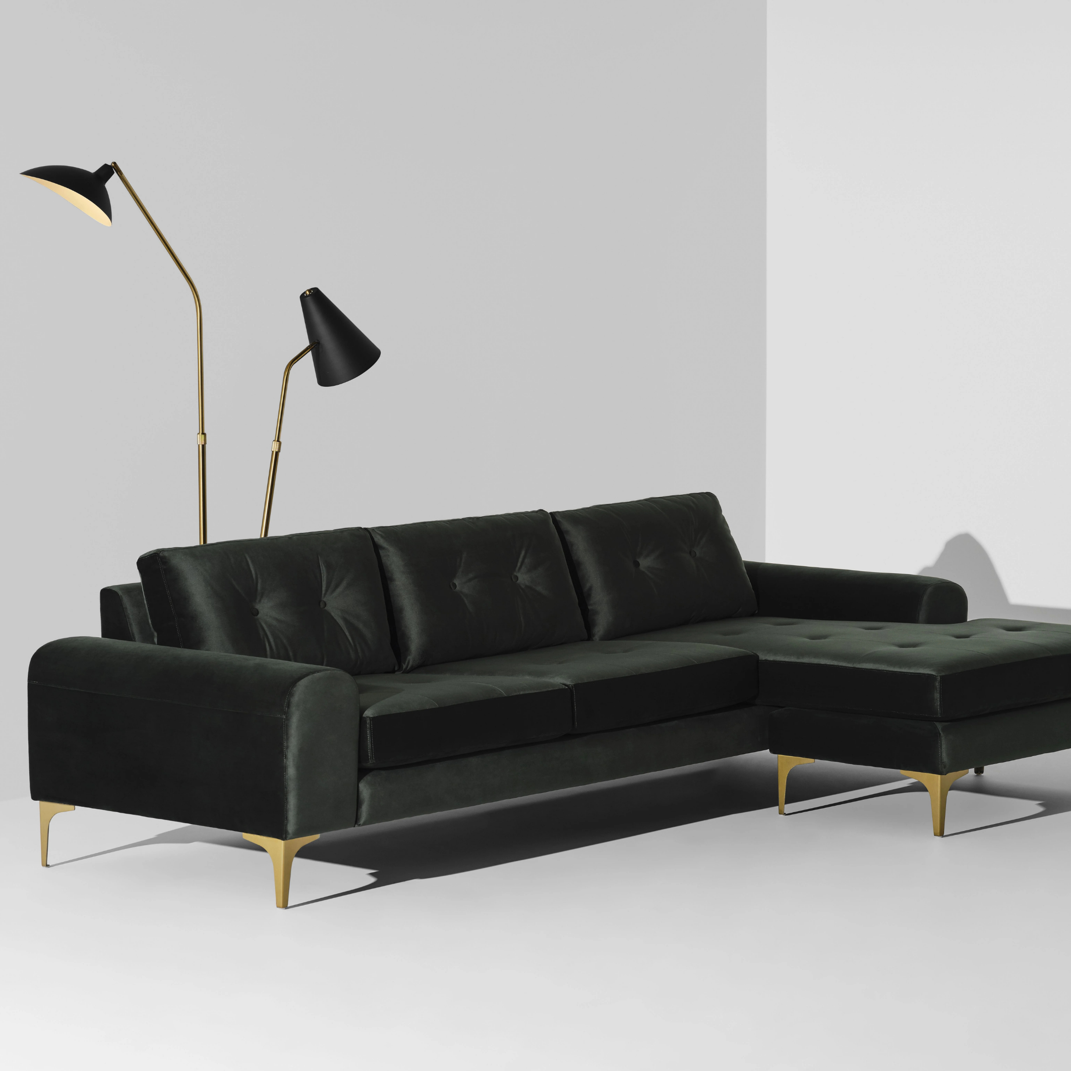 Colyn Sectional Sofa (Emerald Green with Gold Legs)