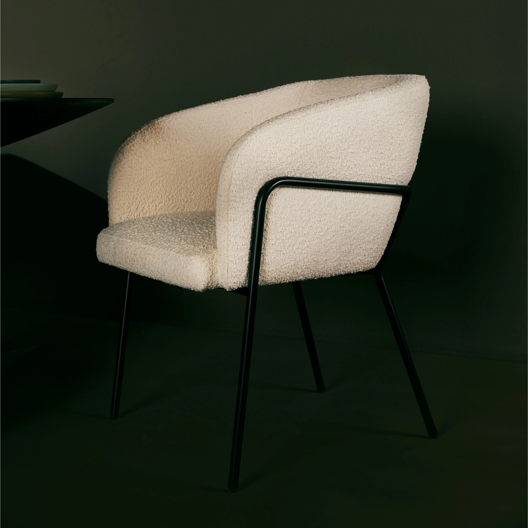 Estella Dining Chair (Buttermilk Boucle Fabric & Black Frame)