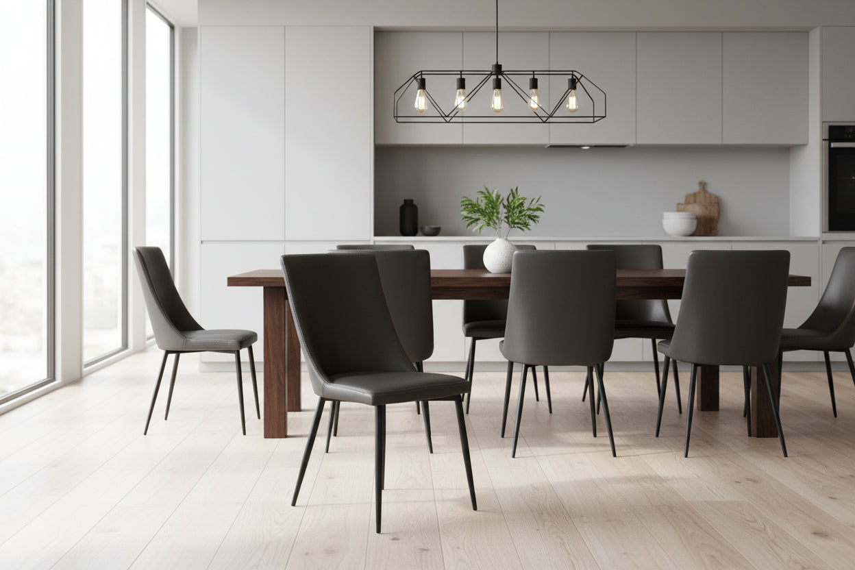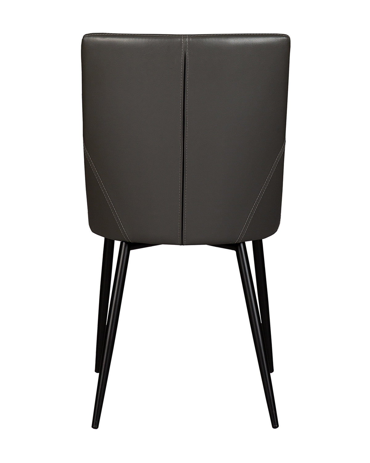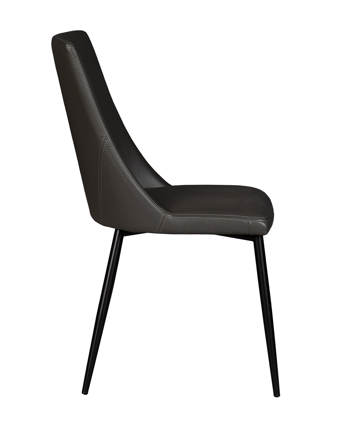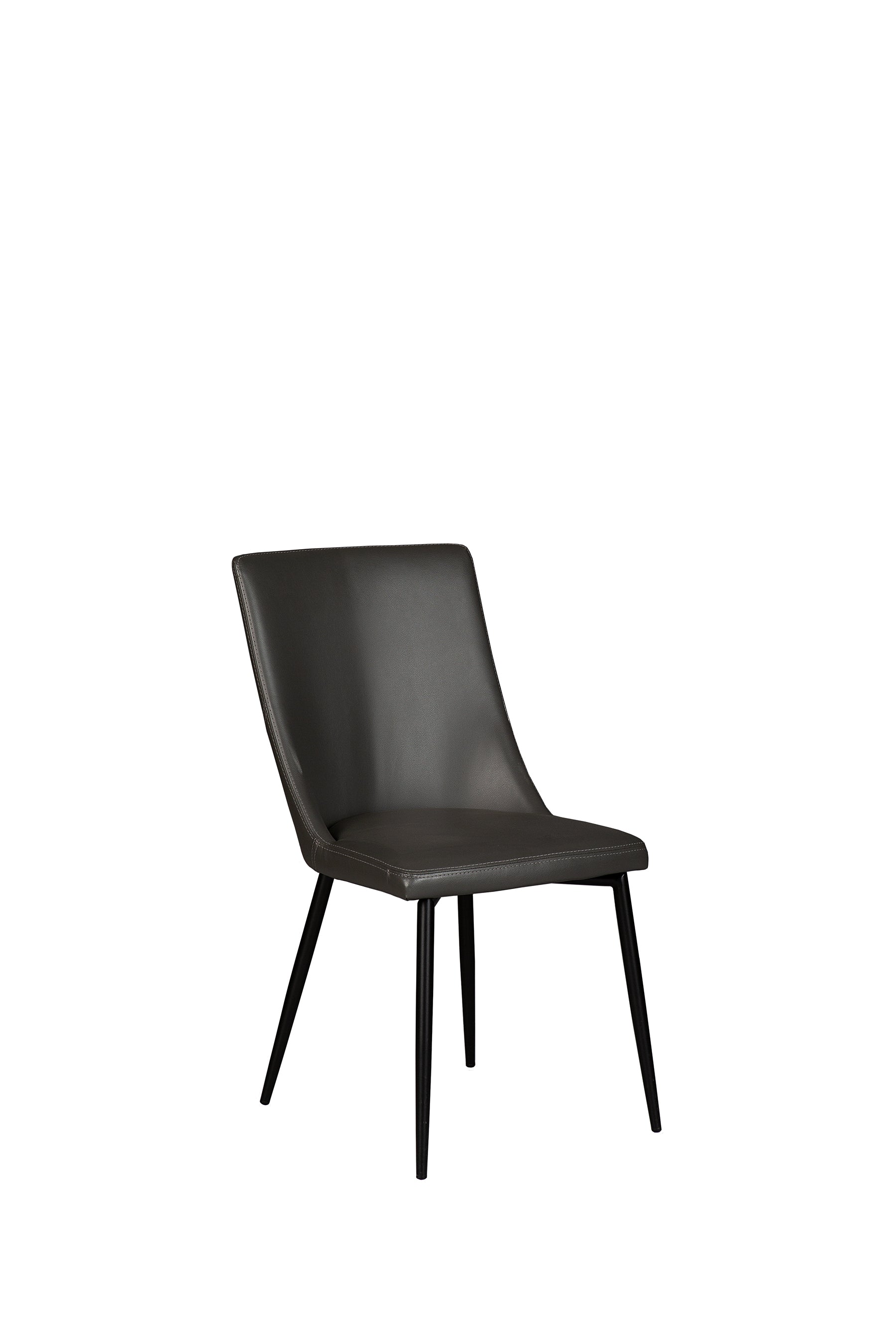 Sleek and minimalist, this dining chair features a smooth upholstered seat with a gently curved back for enhanced comfort and support. Its refined silhouette paired with slim black metal legs creates a modern look that fits effortlessly into any dining space.