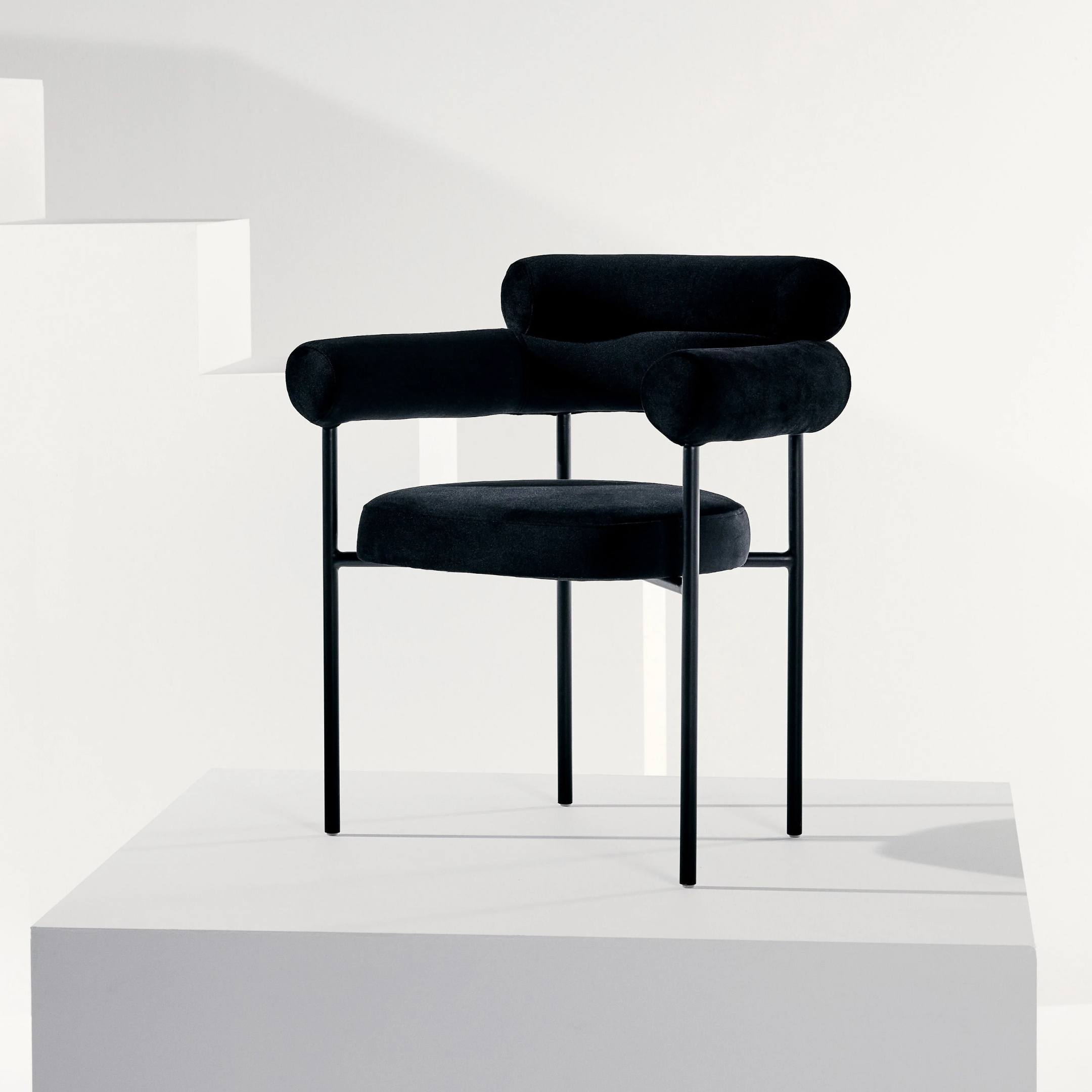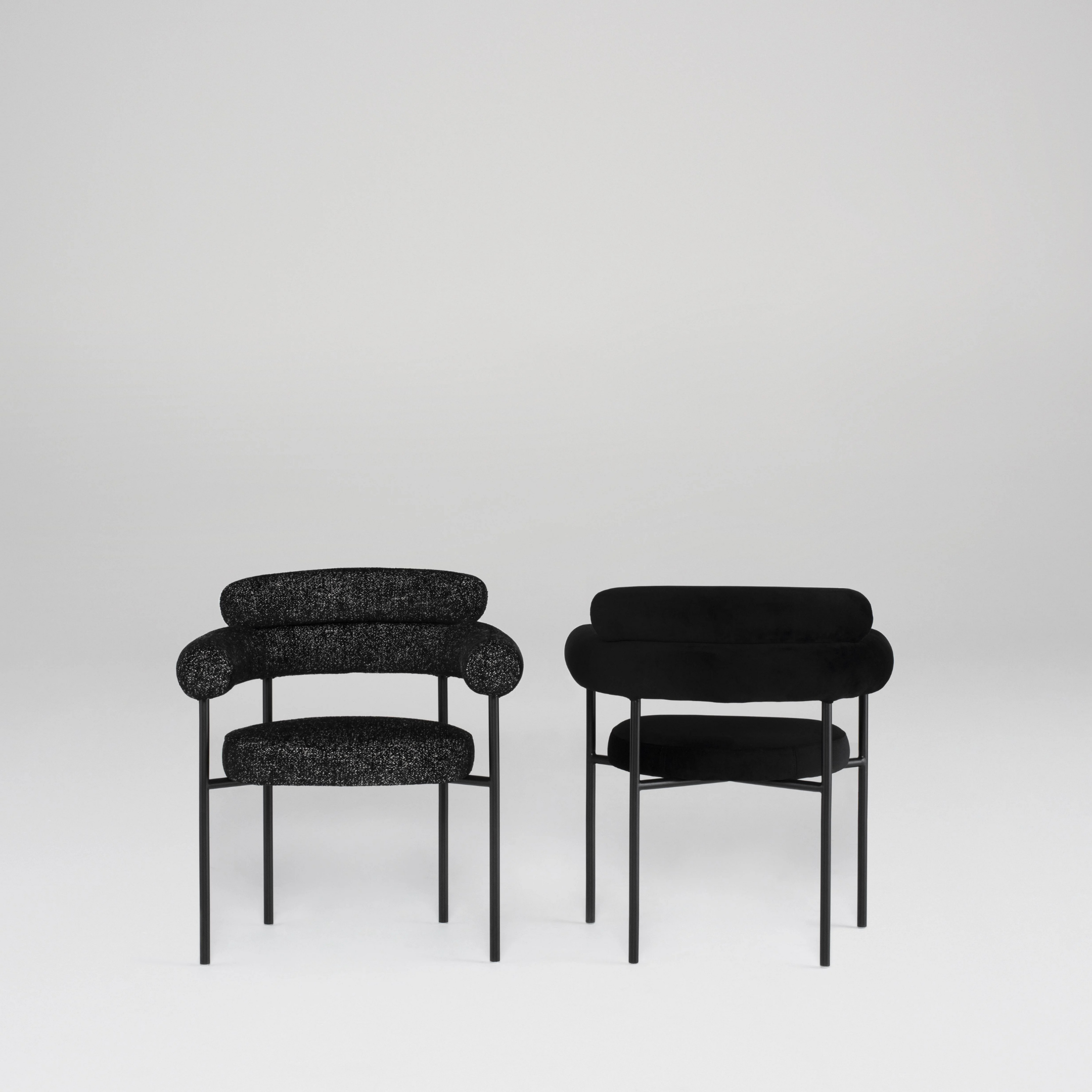 With a tastefully curved backrest and sophisticated tubular shape, the Portia dining chair feels refined and poised. Its contemporary silhouette has been influenced by the soft lines and luxurious upholstery of the ?70s, making it the perfect piece for an old-meets-new statement.