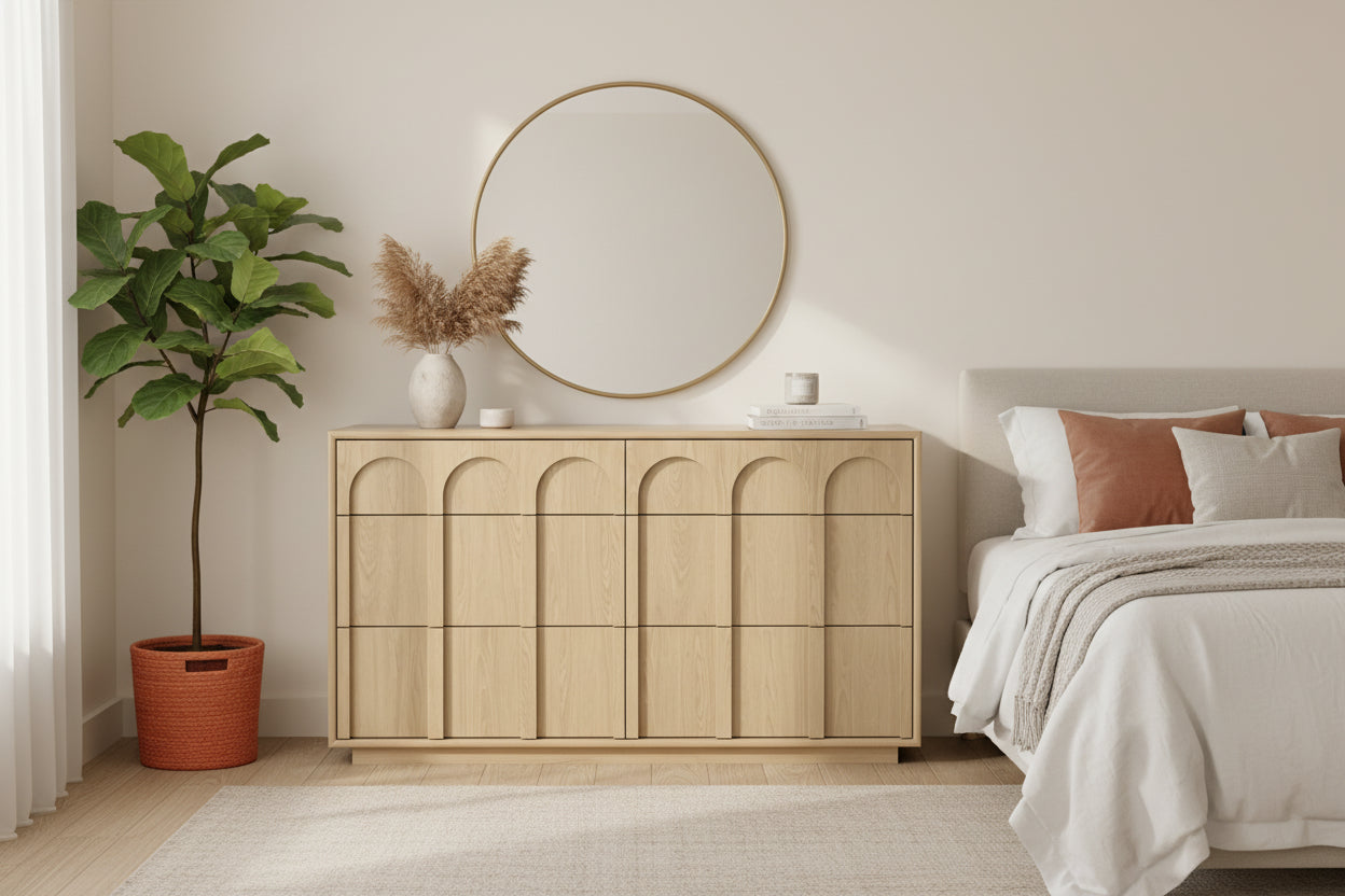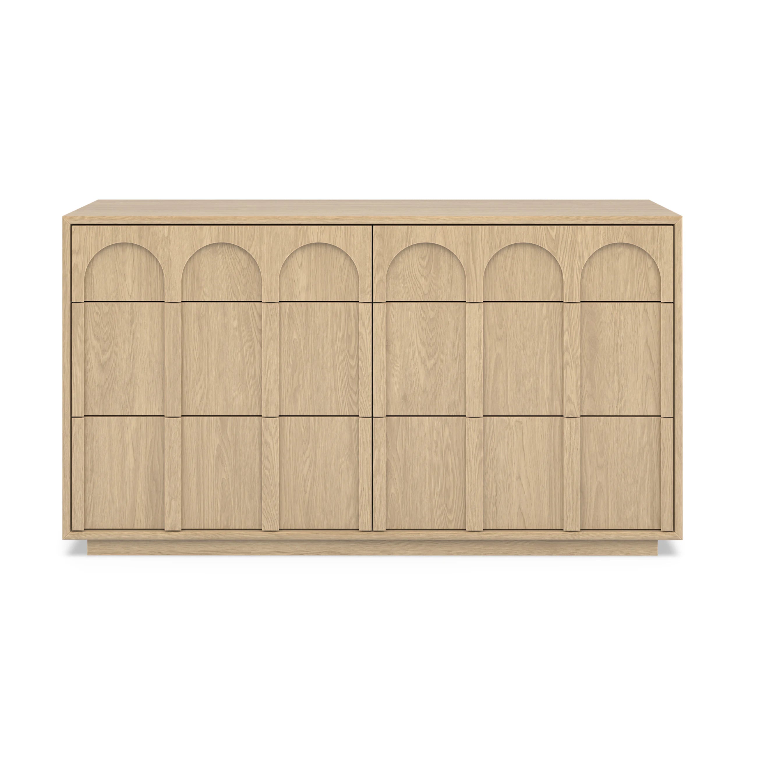 Playful but never silly, the Prima adds a little zhuzh to a utilitarian dresser. Storage? No: the Prima does not simply store things. It caresses them in one of six soft-close compartments, readying your pieces for the stage of life. Built upon a plinth base, the Prima's drawers have a chamfer inset for easy opening without interrupting the arch line.