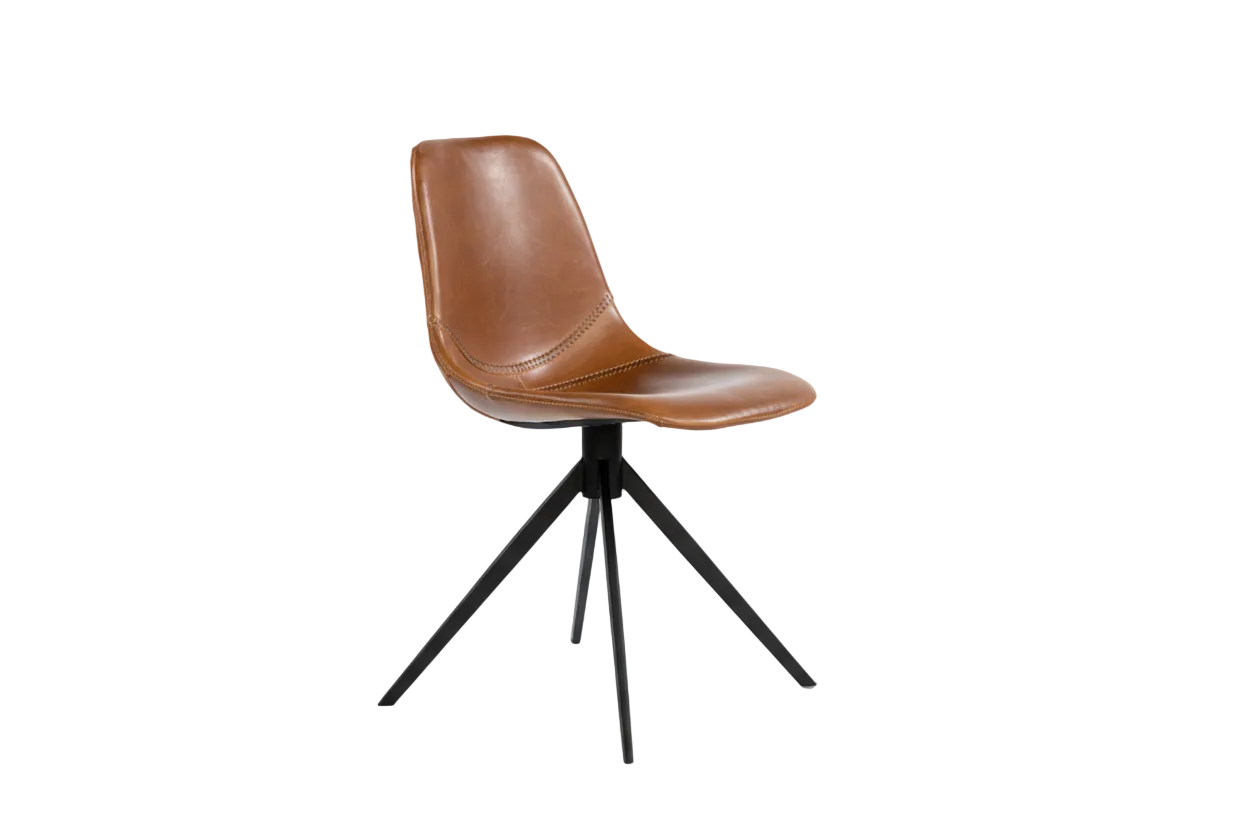 This Sara Dining Chair features a vintage brown finish, PU upholstered back and seat, and black metal powder coated base. It is a great choice for any dining room.