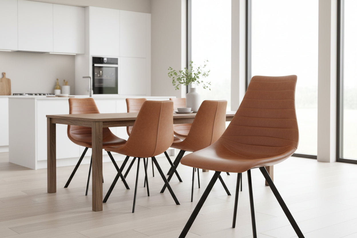 Contemporary, discreet and elegant, the leather dining chair is ready to welcome your family and guests for a good meal with those you love.