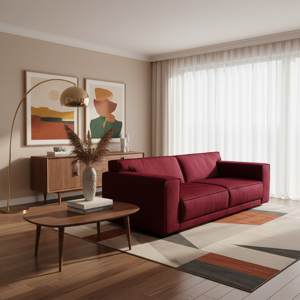 Ce sofa en velours bordeaux est la définition du chic moderne. Avec sa couleur riche et profonde, il devient instantanément le point focal de votre salon. Son tissu doux au toucher et sa silhouette épurée offrent un confort haut de gamme sans compromis sur le style.