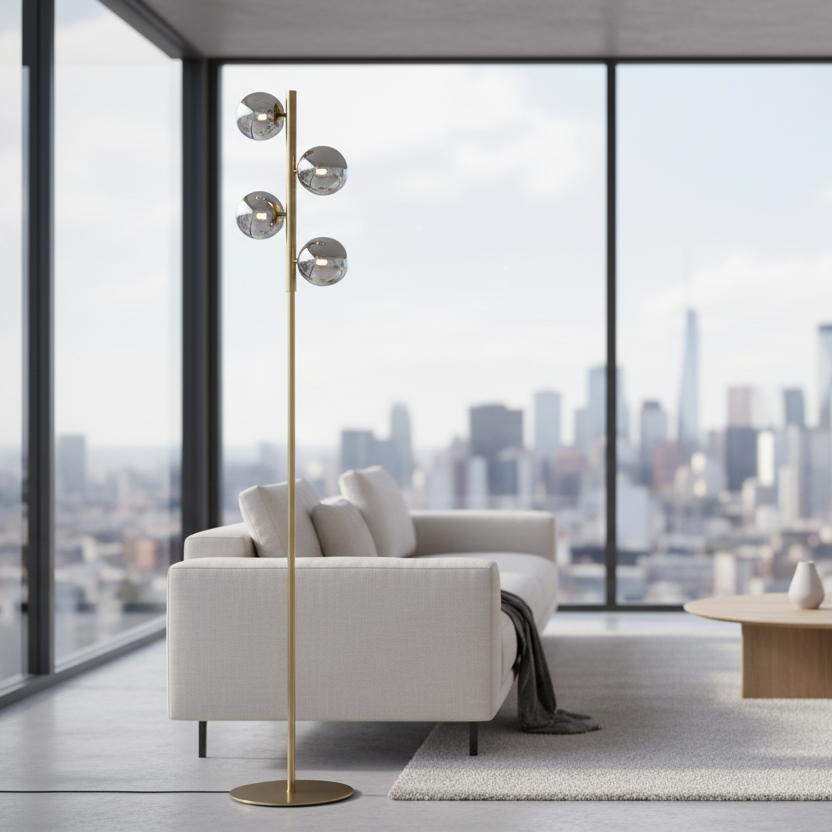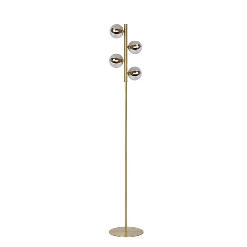 1x MISSING BULB A refined statement piece, this gold floor lamp brings warmth and elegance to any interior. Featuring a slender metal frame with a radiant gold finish, it offers a sleek and contemporary silhouette that complements both modern and classic spaces.