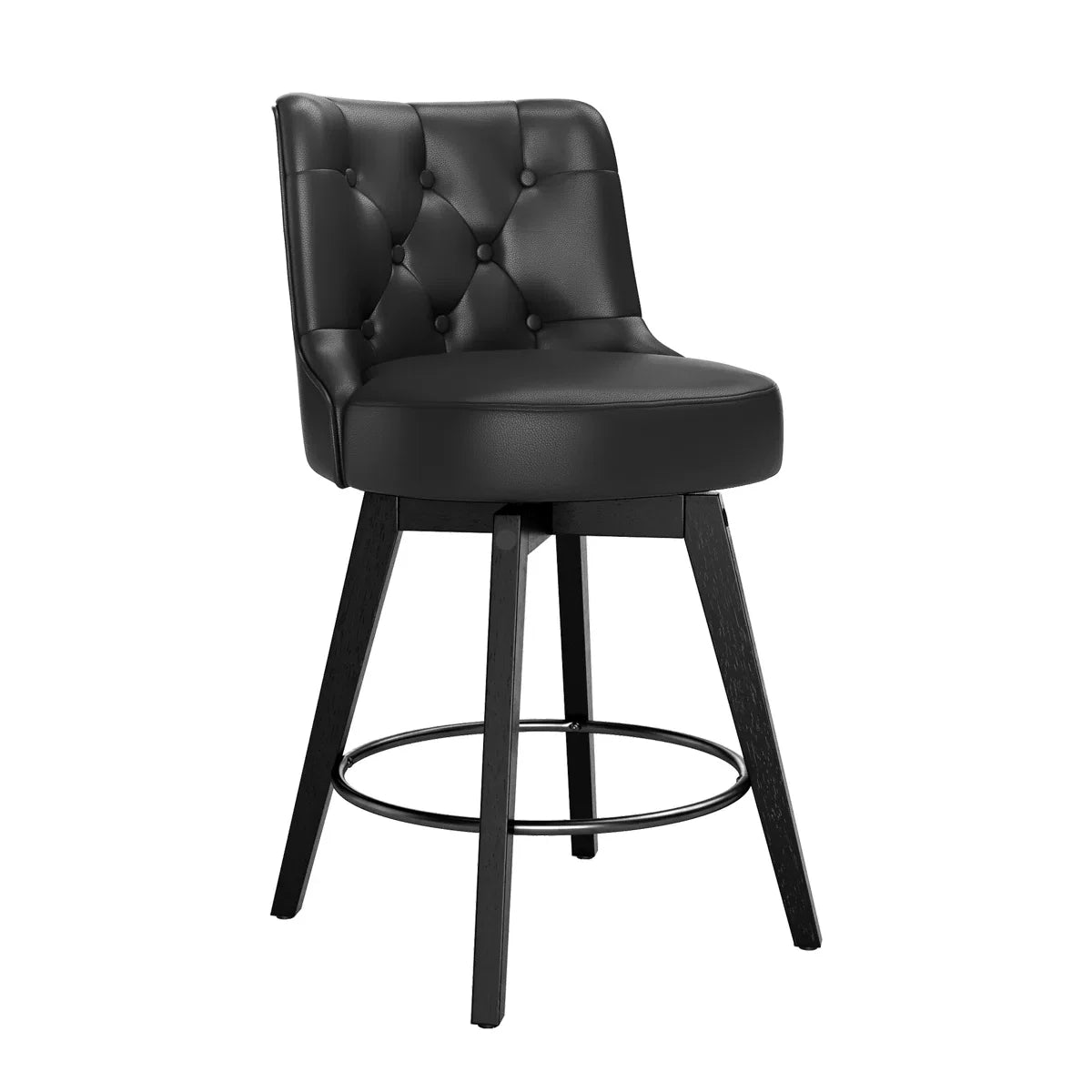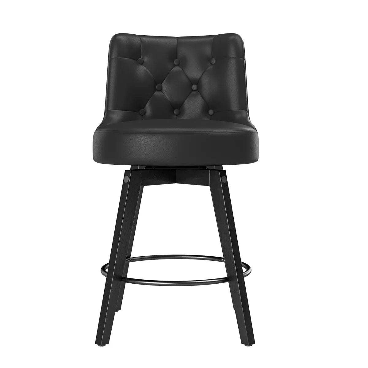 Ce tabouret de bar pivotant allie style raffiné et confort au quotidien, ce qui en fait un complément idéal pour les îlots de cuisine ou les salles à manger. Fabriqué en bois d'hévéa massif et résistant, il repose sur quatre pieds fuselés et élégants à la finition noire lisse. L'assise et le dossier sont revêtus d'un tissu haut de gamme moelleux, garni de mousse haute densité, offrant confort et soutien. Son pivot à 360° facilite les déplacements, tandis que le dossier capitonné apporte une touche sophistiquée qui s'intègre harmonieusement à tout intérieur, moderne ou classique.