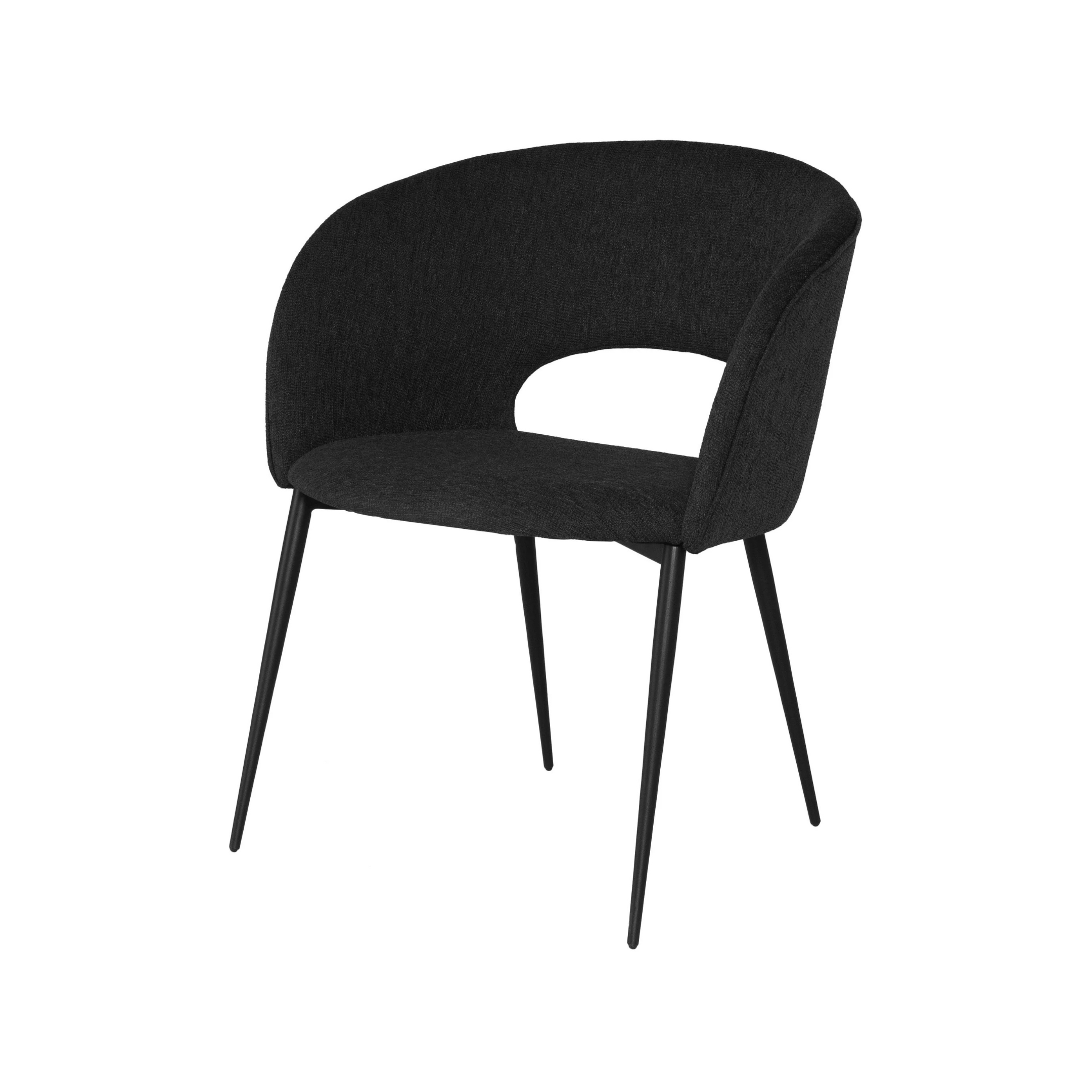 In rich and textured boucle, the Alotti dining chair is a modern take on thebold and modish designs of the '60s. Resting on matte black steel legs, itscurved back offers ample support, while a smooth cut-out detail enhances itsretro appeal.