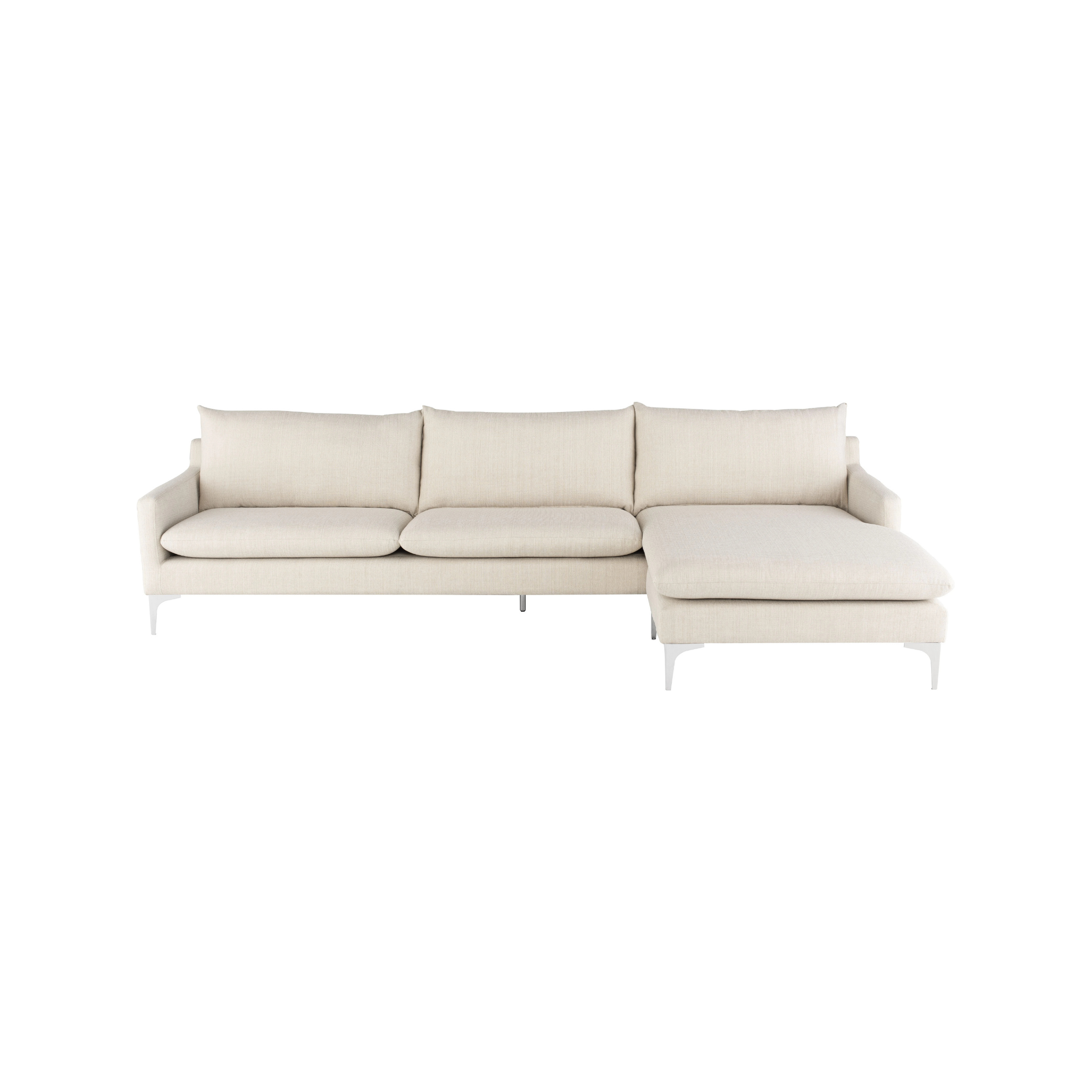 The Anders sectional sofa strikes an inviting profile, its clean lines are softened by plush cushions. The integrated ottoman allows for placement to the left or right.