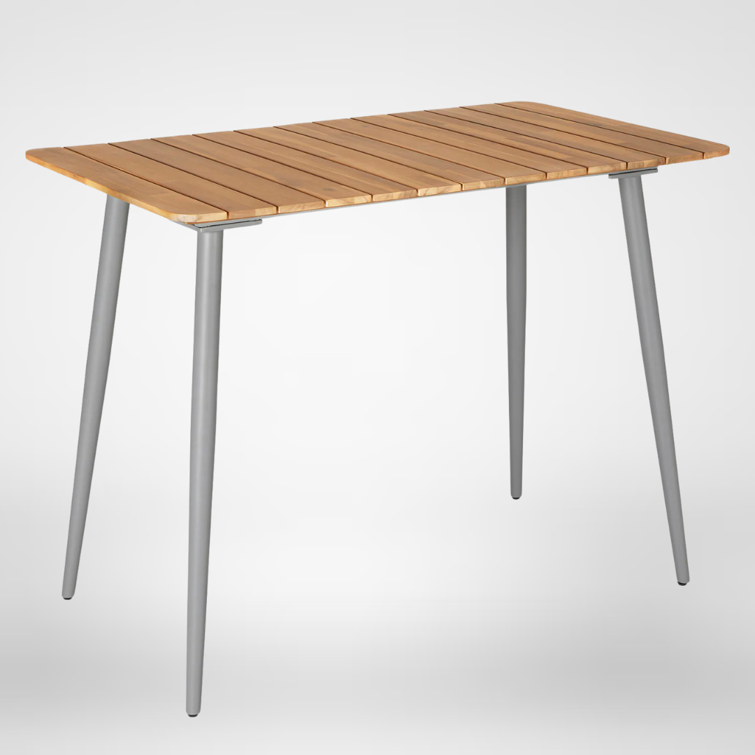 La table de bar d'extérieur Pacifica allie élégance moderne et charme naturel. Dotée d'un plateau à lattes en acacia massif et de pieds en aluminium thermolaqué , cette table est conçue pour durer et offrir un style raffiné. Son format compact mais spacieux la rend idéale pour les repas conviviaux en plein air, en famille ou entre amis.
