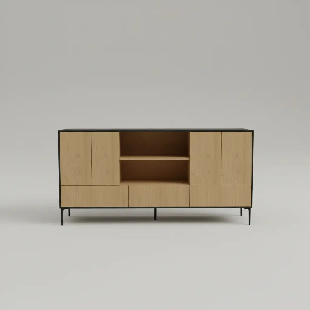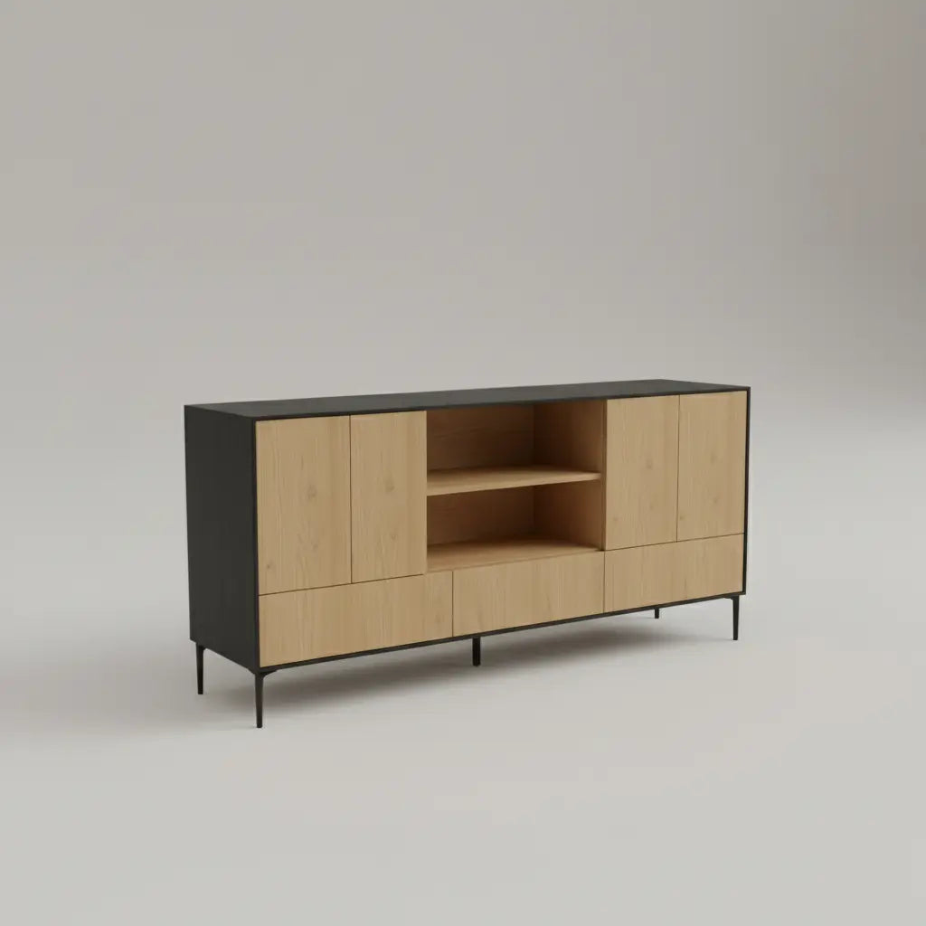 The BLACKBIRD Buffet Console combines sleek modern lines with refined storage functionality. Its clean silhouette is enhanced by smooth finishes and thoughtfully arranged compartments, offering both style and practicality. Designed to elevate contemporary living or dining spaces, it provides ample storage while serving as a sophisticated statement piece in any interior.