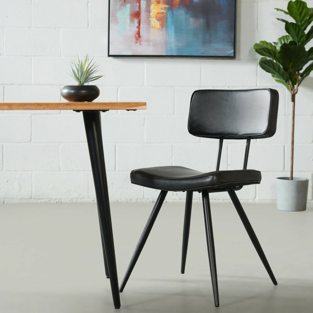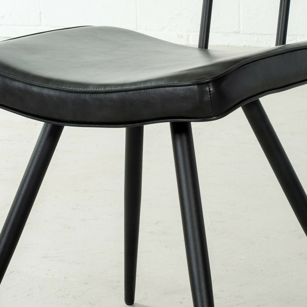 Our Blake Leather Dining Chair is a modern industrial masterpiece. Upholstered with our very own premium vegan leather that’s easy to clean, and placed on black powder coated industrial metal frame that’s sure to wow anyone with good taste. Crafted with the highest quality standards, this modern dining chair brings comfort and style to those long family dinners.  Take our word for it, Blake is a winner!