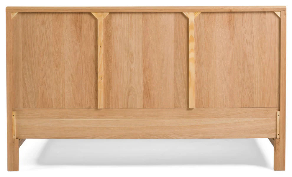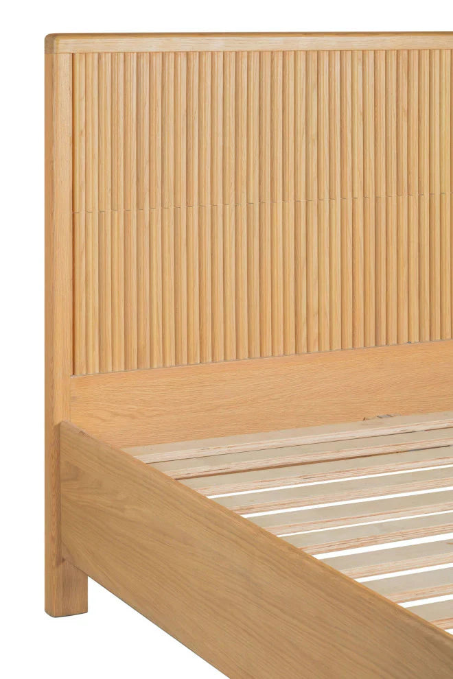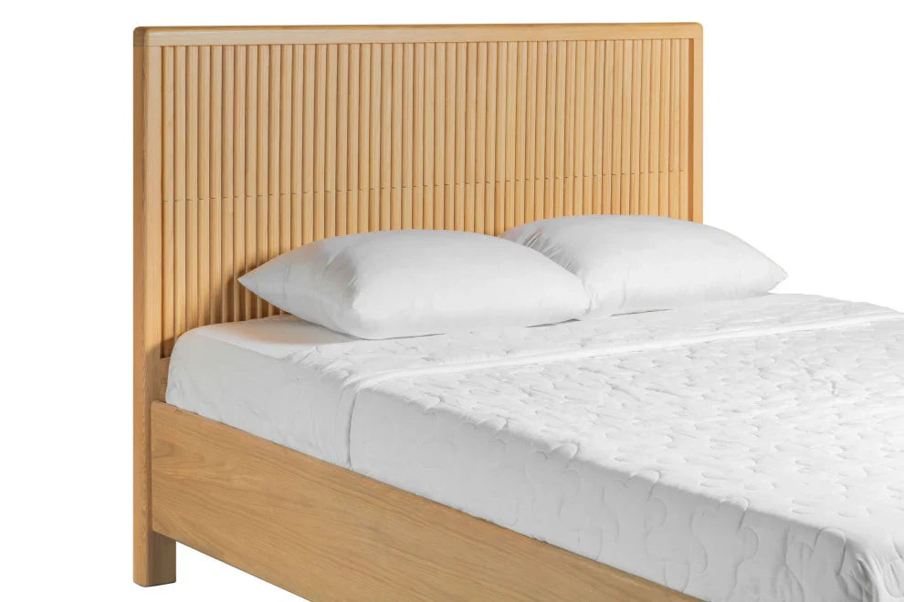 Le lit Winters allie simplicité et design raffiné, offrant un confort de sommeil exceptionnel. Fabriqué en chêne massif naturel avec une finition lisse, ce lit est doté d'une tête de lit à panneaux et de pieds en bois aux formes arrondies. Conçu pour plus de praticité, le matelas est soutenu par des lattes, rendant inutile l'utilisation d'un sommier tapissier.