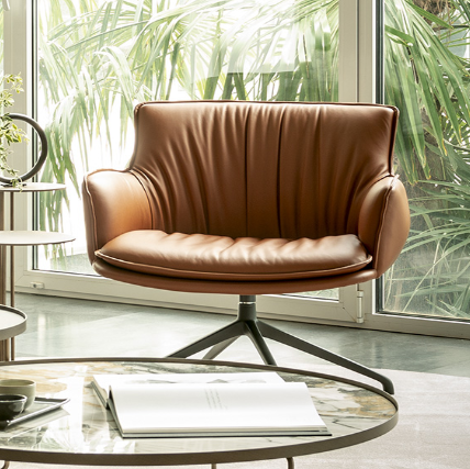 The CATTELAN Rhonda Lounge Chair (Caramel Leather) — A stunning expression of Italian craftsmanship and modern luxury. Upholstered in rich caramel leather, the Rhonda features a sculptural curved backrest and refined stitching that showcase both artistry and comfort. Its ergonomic design and sleek silhouette create an inviting yet sophisticated presence, perfect for contemporary interiors. With its blend of elegance, comfort, and timeless materials, the CATTELAN Rhonda Lounge Chair embodies refined style and enduring sophistication.