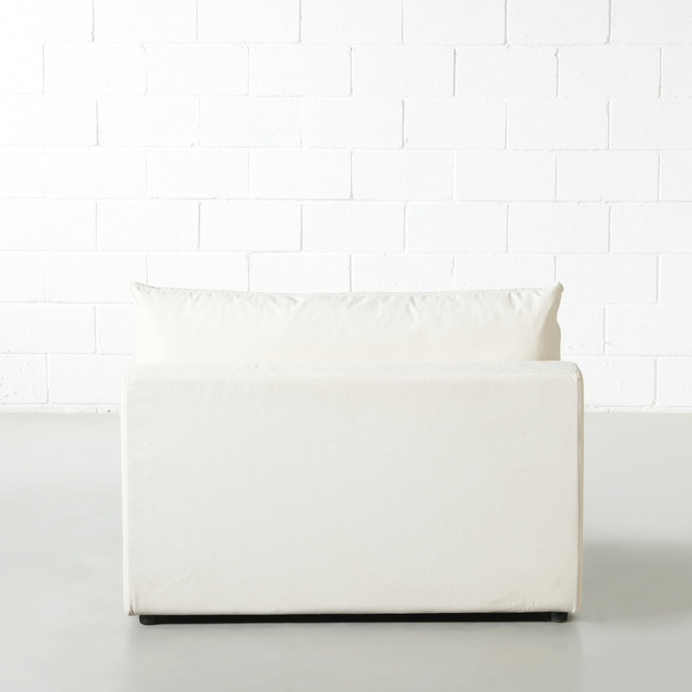 Enveloppé d'un doux tissu beige crème et généreusement garni d'un mélange de plumes et de fibres de polyester, ce module vous invite à la détente avec confort et style. Le module de chaise COSMIC fait partie d'une collection entièrement modulable, vous permettant de composer un ensemble d'assises parfaitement adapté à votre espace, qu'il s'agisse d'un coin cosy ou d'un vaste canapé d'angle.