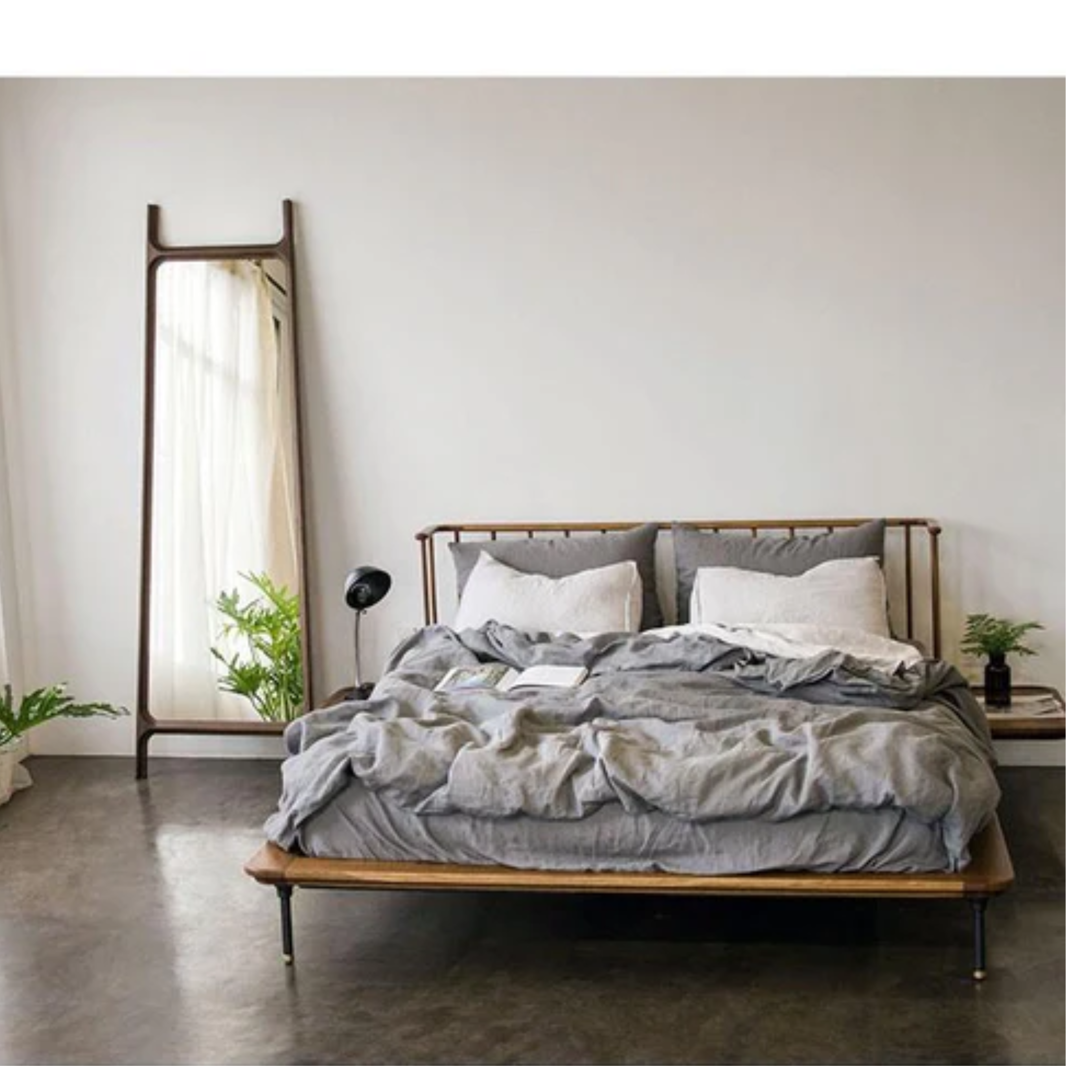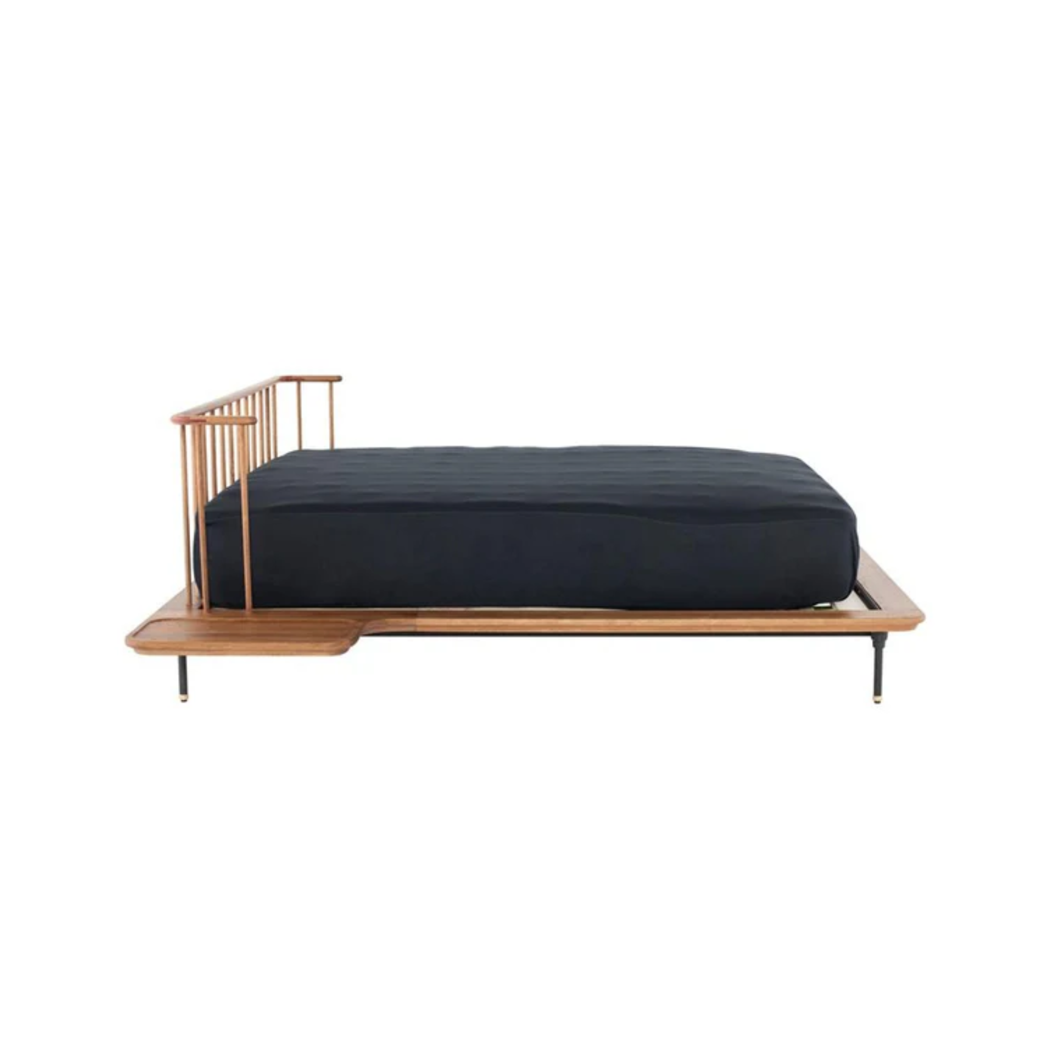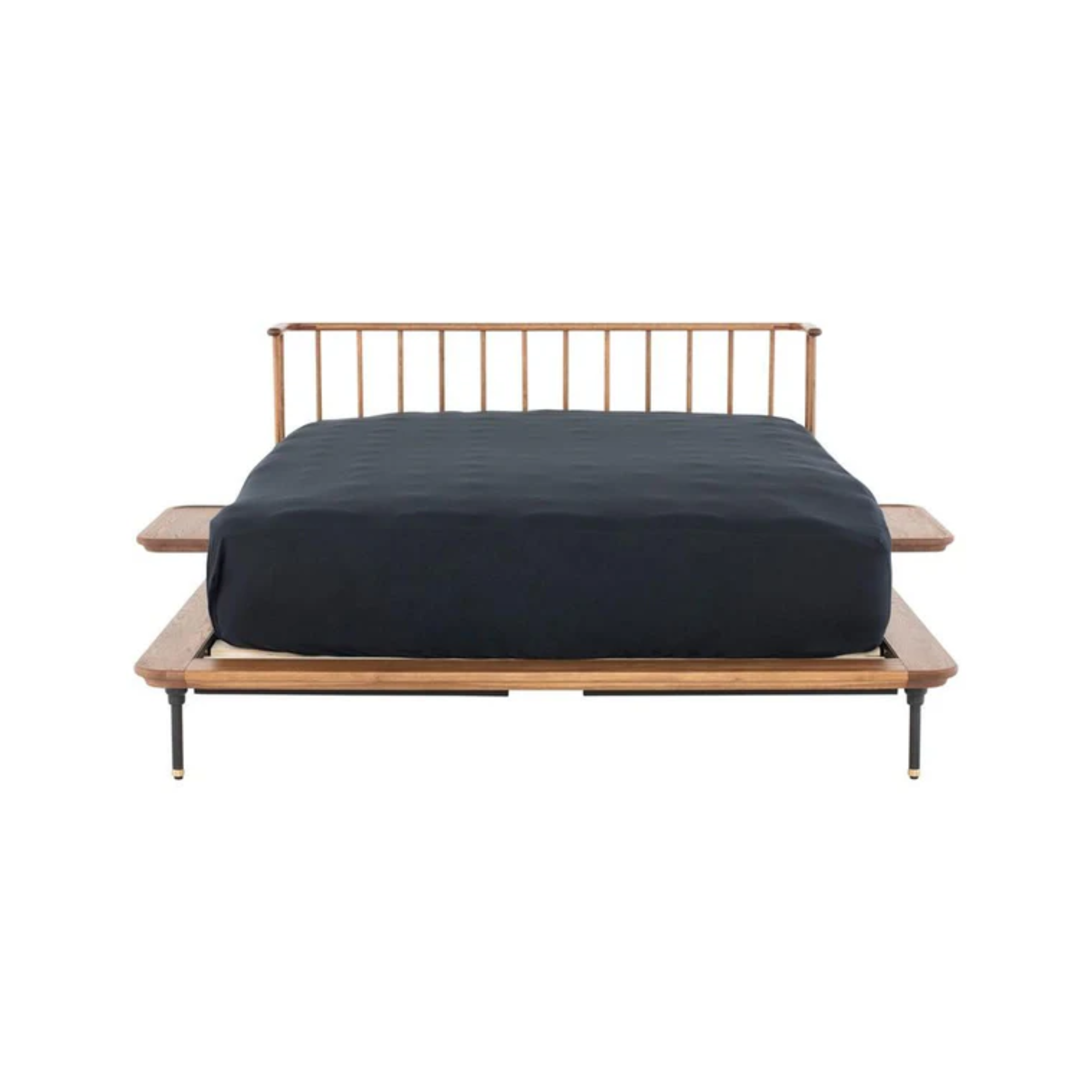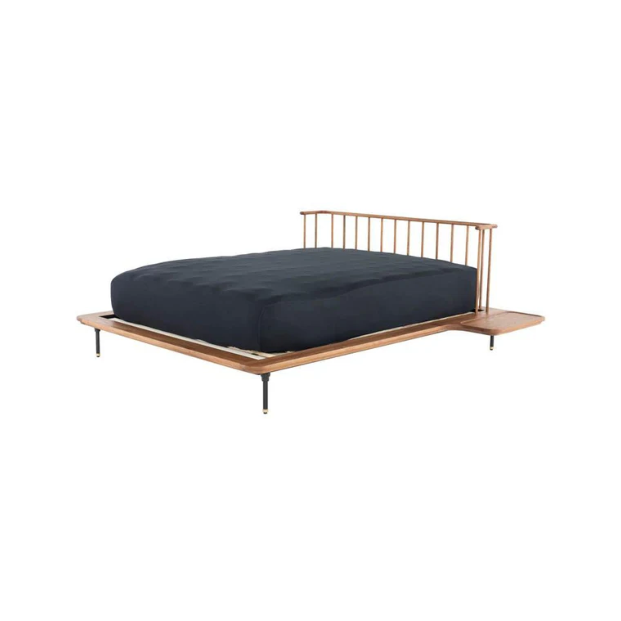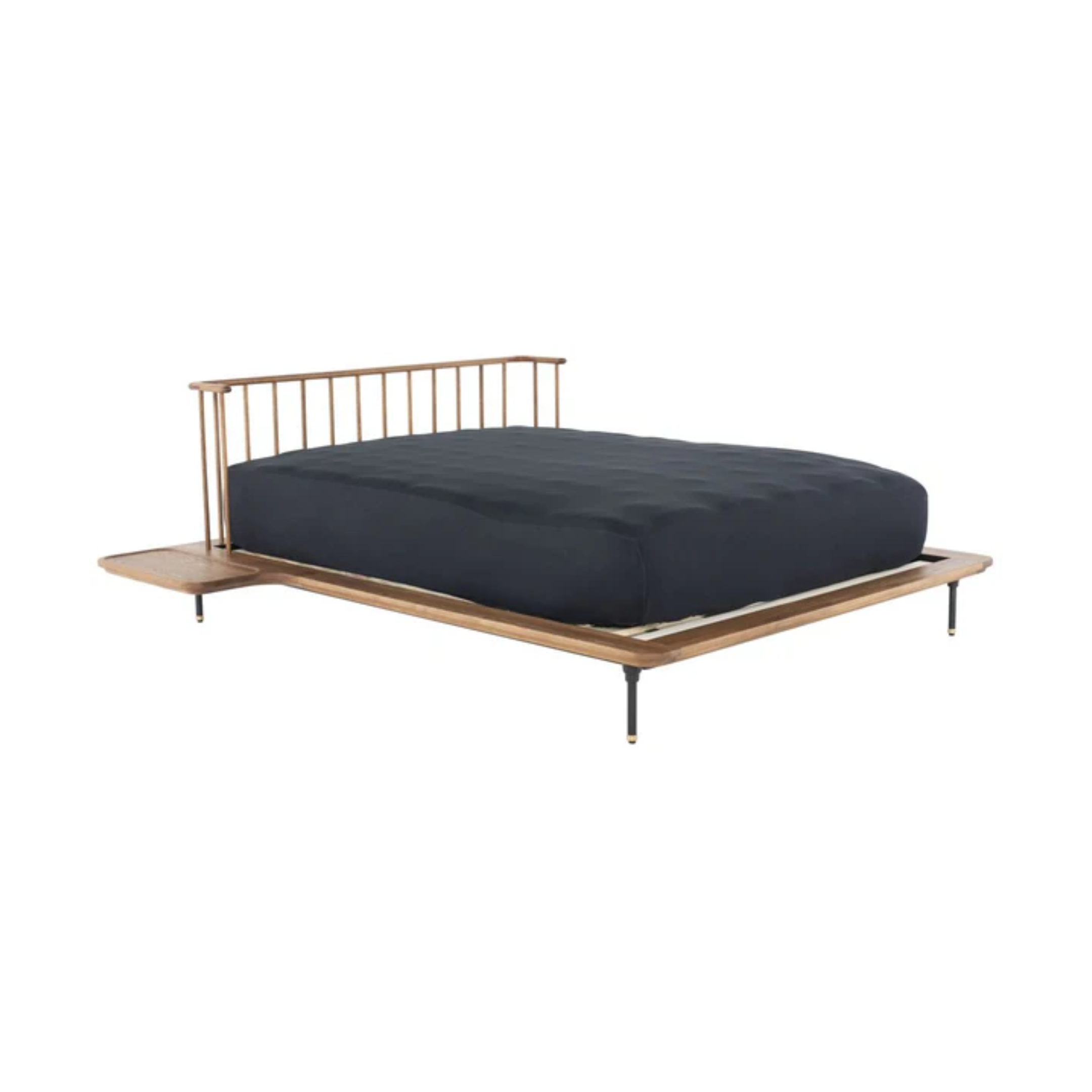 Utility and functionality are hallmarks of the Distrikt King bed. Inspired by Gustav Stickley's iconic proto-modern designs of the early 20th century accented with an industrial aesthetic, the distinctive Distrikt bed features a dowel headboard and solid wood platform with cast iron legs for contrast and style.