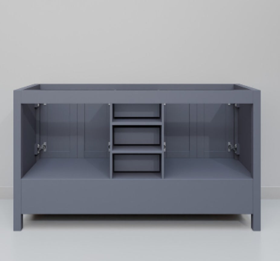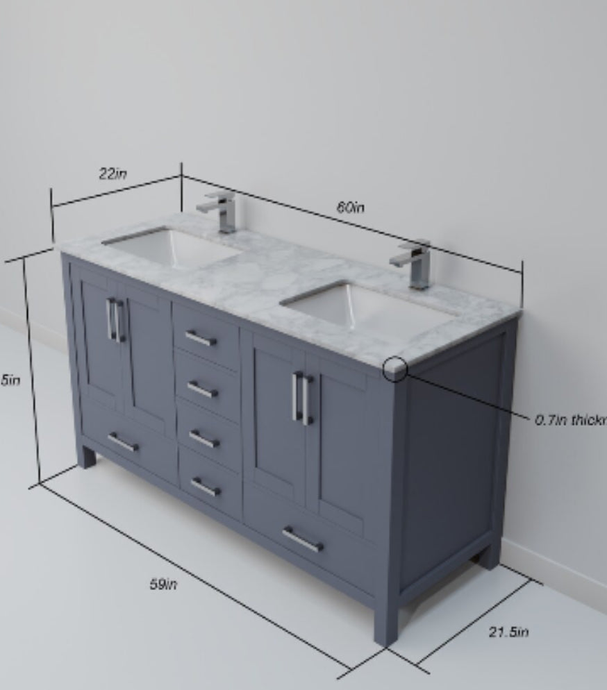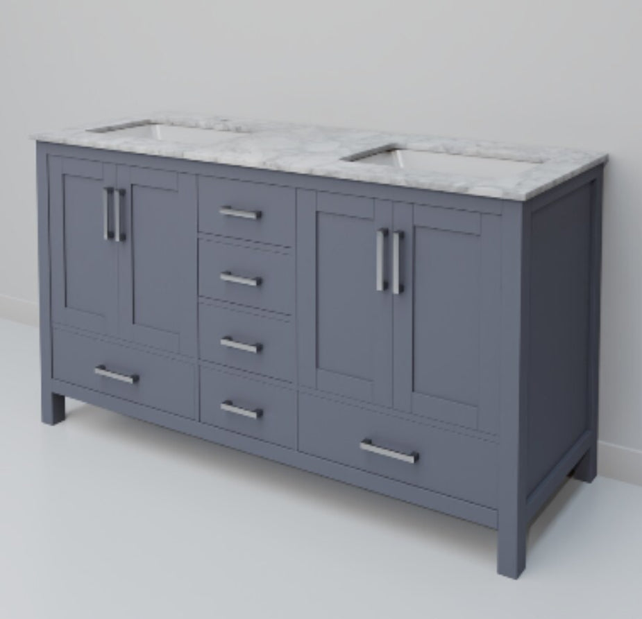 Meuble-lavabo double encastré Lexora Jacques - 180 cm, gris foncé, avec plan de travail en marbre blanc de Carrare