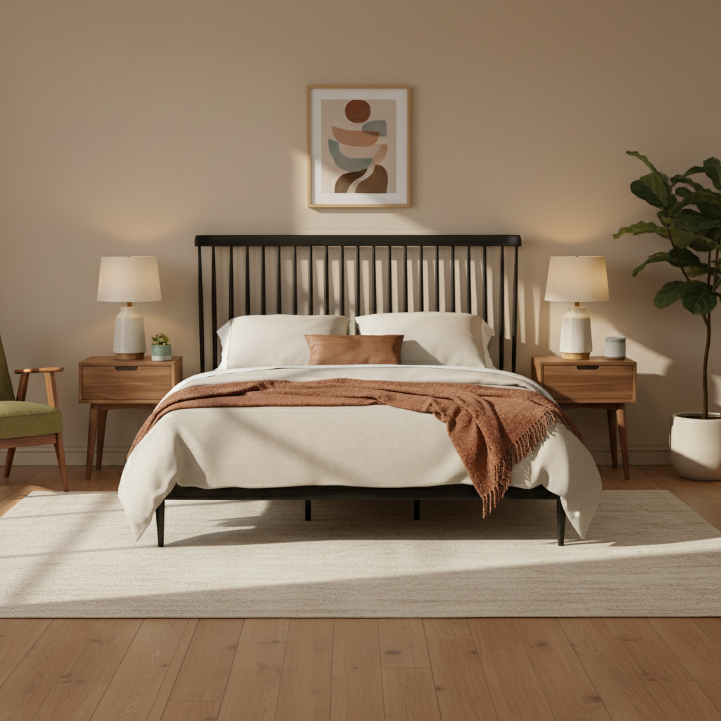 Découvrez le lit Jessika Noir. Inspiré par l'élégance intemporelle du style Shaker, ce lit allie charme classique et modernité. Fabriqué en peuplier américain massif, il allie durabilité et qualité de fabrication. Sa tête de lit à chevilles apporte une touche de sophistication traditionnelle, tandis que sa plateforme discrète apporte une touche contemporaine.
