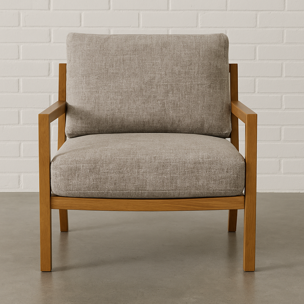 The Karetta Armchair (Smoked Oak) — A refined fusion of craftsmanship and comfort. Framed in rich smoked oak, the Karetta showcases elegant wood detailing paired with plush, tailored cushions for a timeless yet contemporary look. Its sculpted lines and warm natural tones bring a sense of sophistication to any space — from living rooms to reading corners. Built for both durability and style, the Karetta armchair embodies modern elegance with a touch of organic charm.