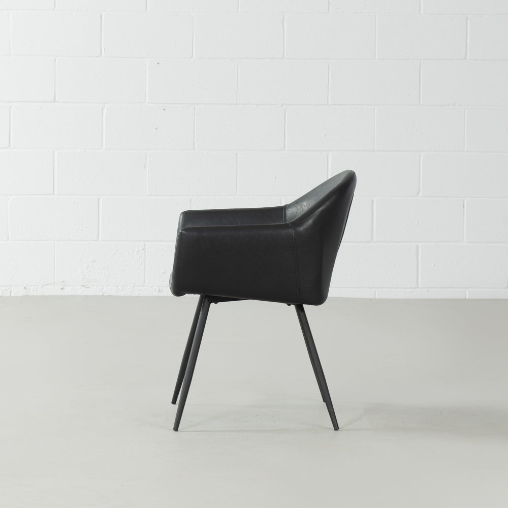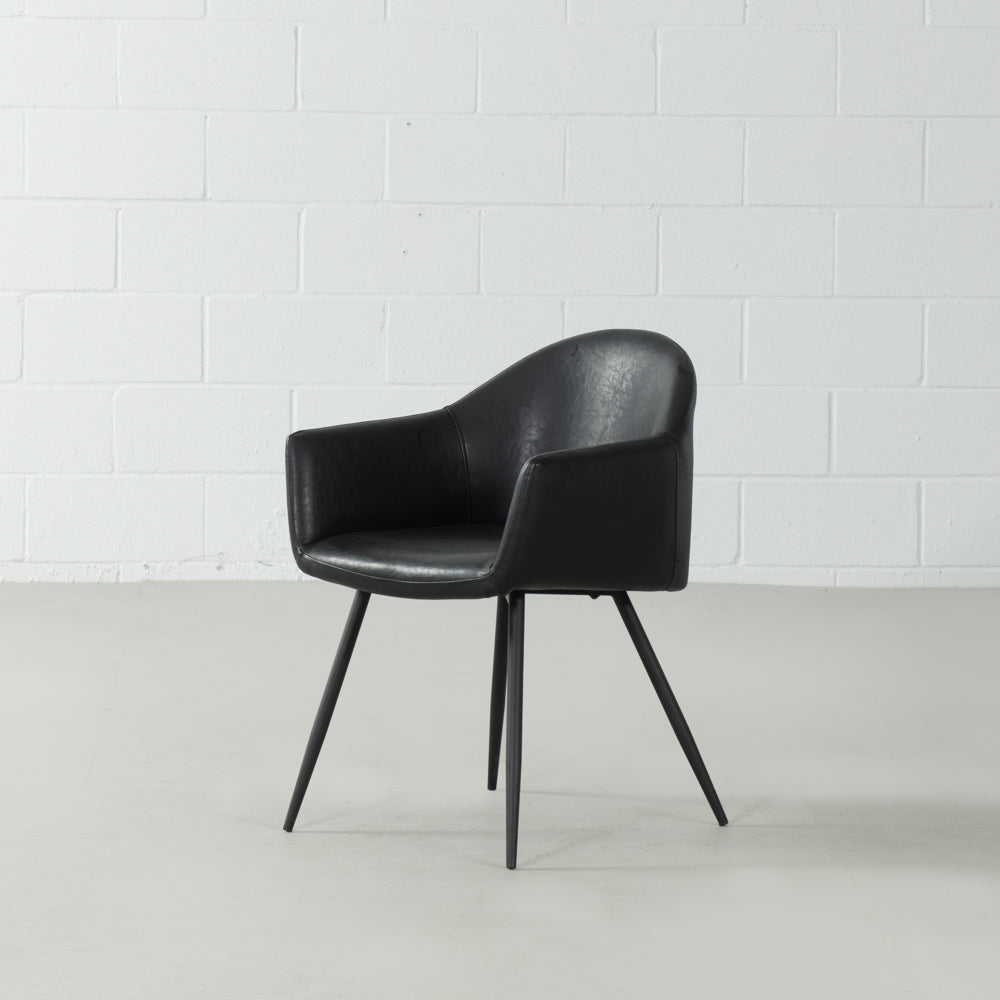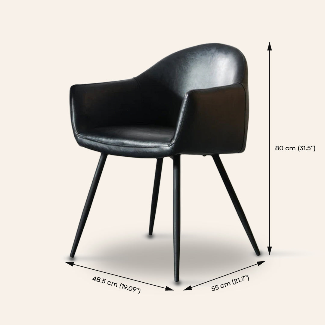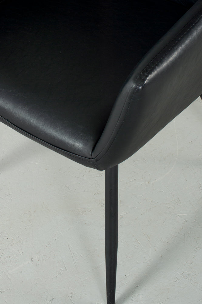 Revêtement en cuir végane de qualité supérieure Base en métal avec revêtement en poudre noir mat Siège profondément rembourré pour un confort durable Essuyer avec un chiffon doux et sec S'associe parfaitement à nos chaises de salle à manger et tabourets de bar Milan
