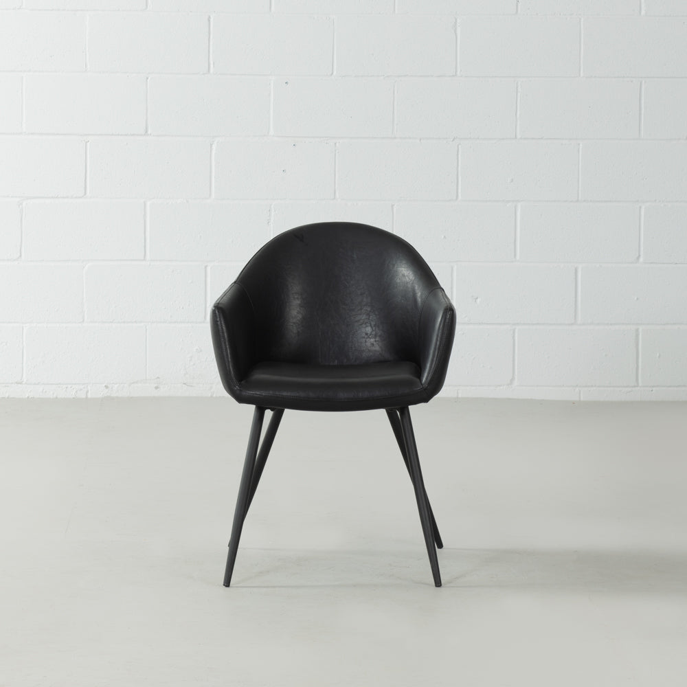 Sa coque de style baquet est fabriquée en bois massif laminé courbé, recouverte de mousse dense et enveloppée de cuir végane noir vintage souple. Elle épouse parfaitement les formes de votre corps pour une assise véritablement confortable. Au lieu du piètement Eiffel classique, le Milan est doté d'une structure métallique épurée et minimaliste, avec une finition thermolaquée noir mat, offrant stabilité et modernité. Une pièce maîtresse qui apporte sophistication vintage et confort au quotidien à n'importe quelle pièce.