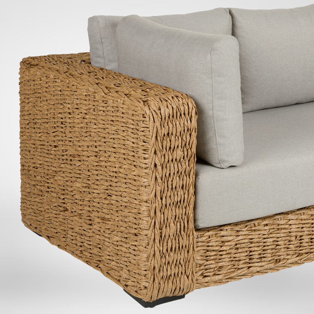 - Construction en osier synthétique : Tissage imitant la feuille de bananier pour une esthétique naturelle et côtière.