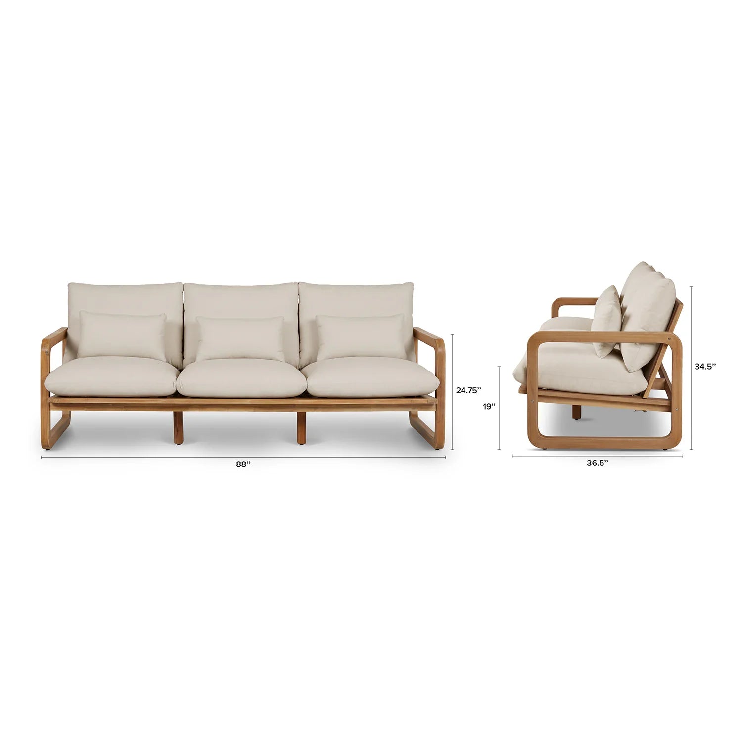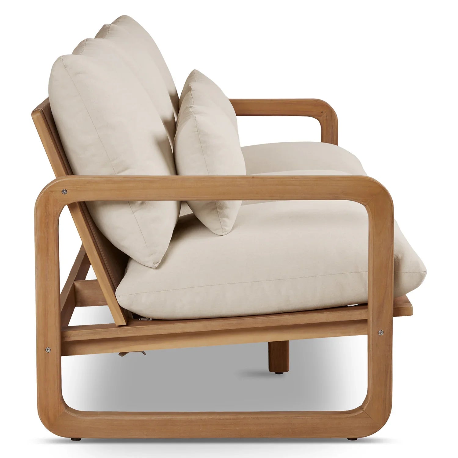 Le canapé d'extérieur Cole allie design d'inspiration scandinave, confort et robustesse pour votre terrasse ou votre jardin. Son profil fin et épuré, ses coussins moelleux et son dossier légèrement incliné créent une assise accueillante. Conçu pour l'extérieur, il est fabriqué avec des tissus résistants à l'eau et aux UV et possède une structure robuste en bois d'acacia qui se patine naturellement avec le temps.