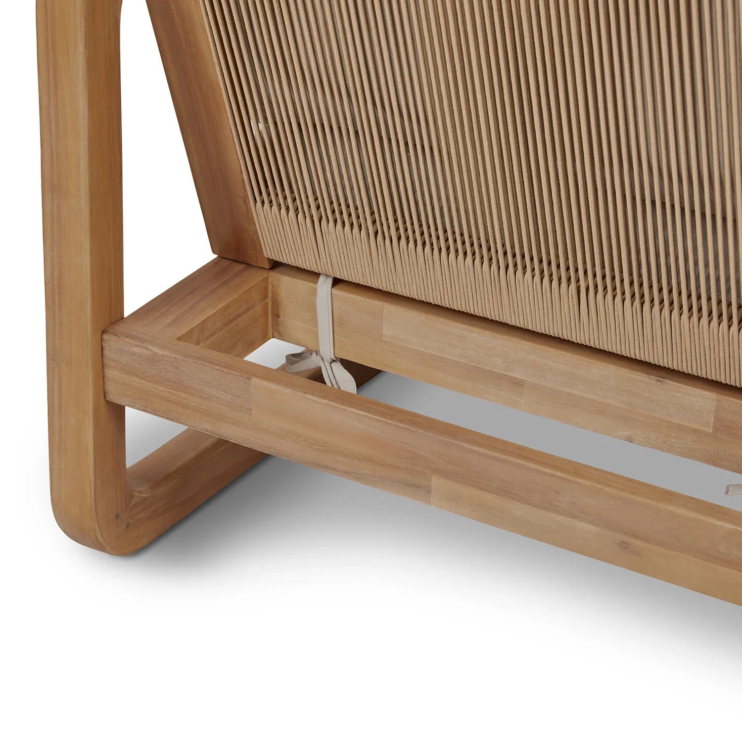 • Dossier en corde de polypropylène tissée et assise en sangle de nylon tissée