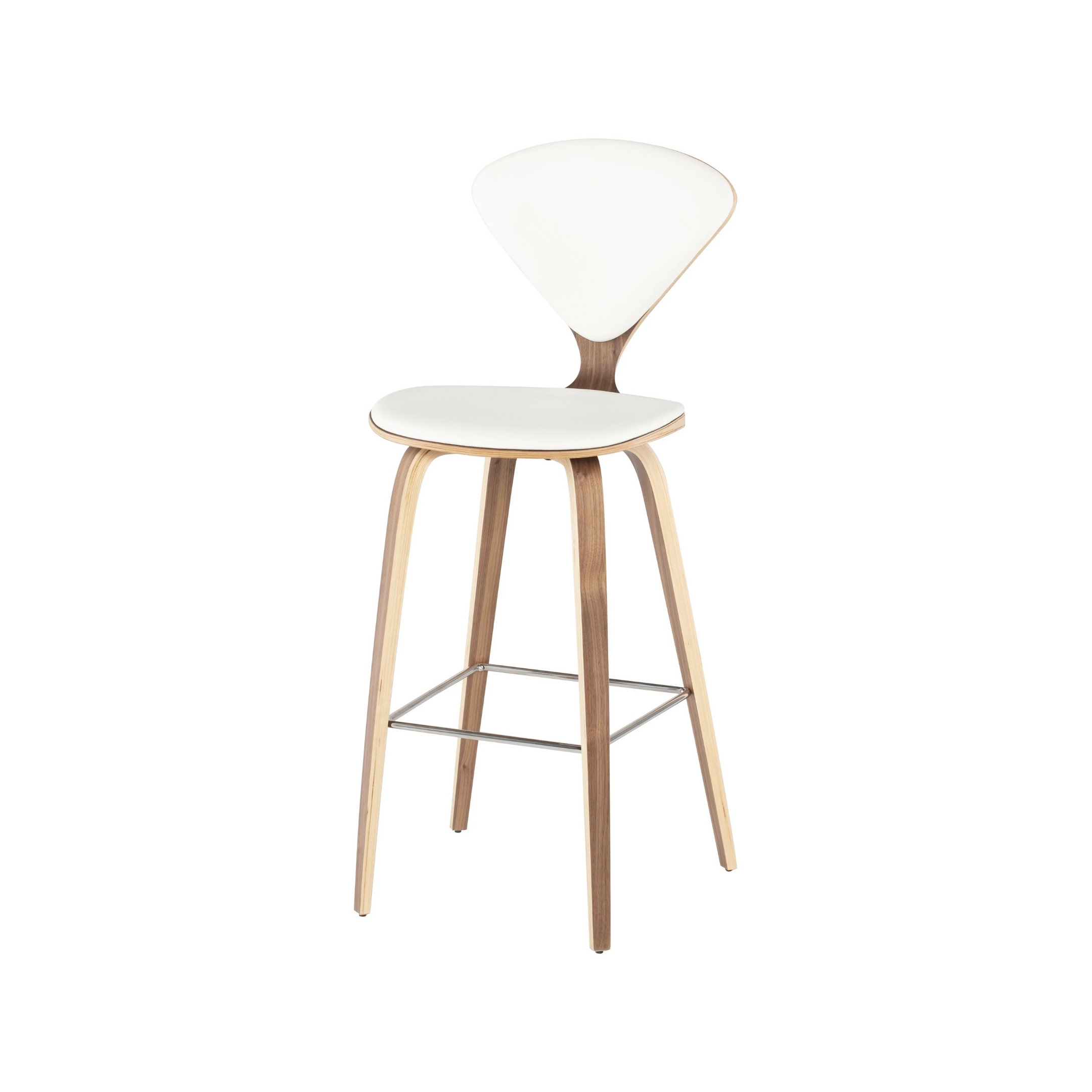 The Satine bar stool is an inspired collaboration of design and craftsmanship. An eye catching design of formed and sculpted plywood with an American walnut veneer. Adding dimension and strength, a stainless steel rod footrest is an elegant feature in high polish stainless steel.