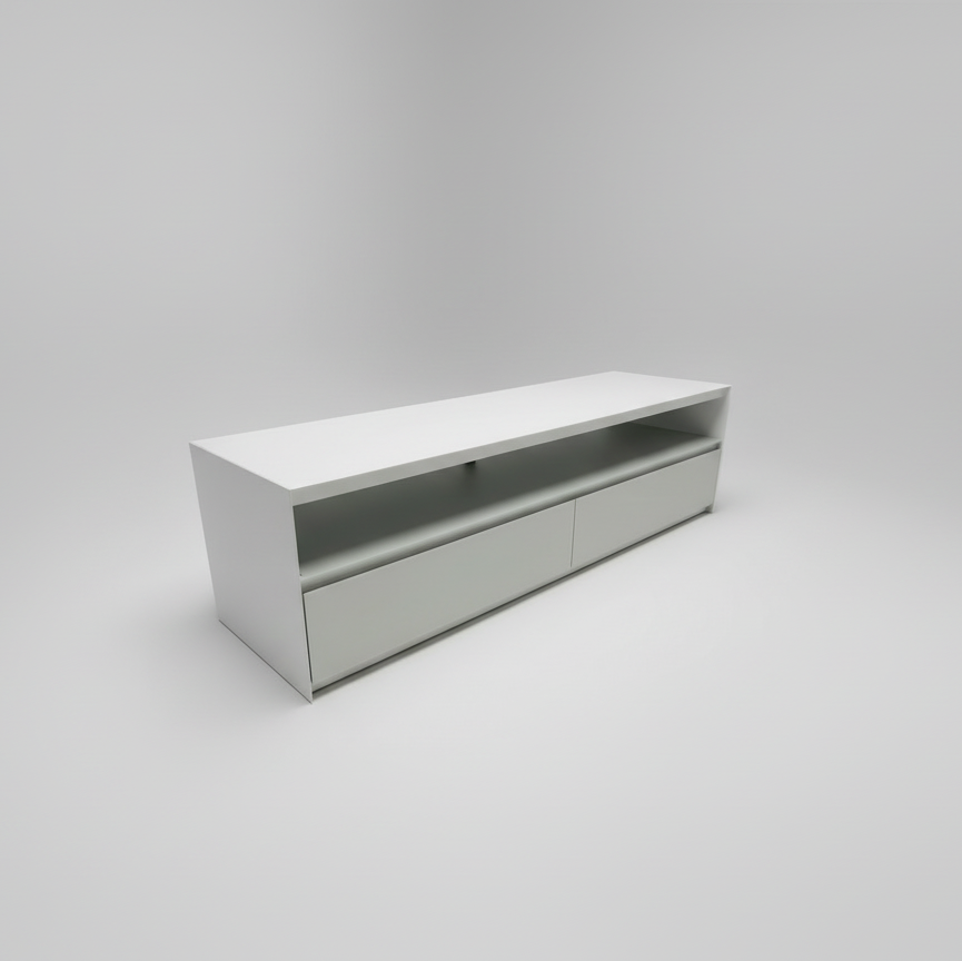 The TRICA Absolute 2-Drawer TV Stand (White Glossy Finish) — A sleek embodiment of modern minimalism and refined craftsmanship. Designed by TRICA Furniture, the Absolute TV Stand features a high-gloss white finish that enhances light and space, paired with two smooth-gliding drawers for seamless storage. Its clean lines and understated design create a sophisticated focal point for contemporary living rooms. Elegant, functional, and built with precision, the Absolute TV Stand blends practical organization with timeless modern style.